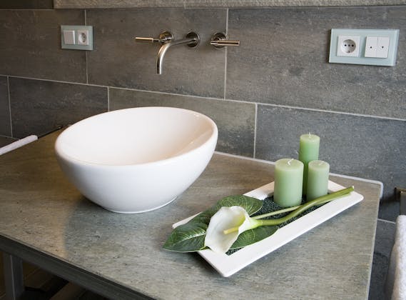 Skiferens motstandsdyktighet mot fukt og varme gjør den til et ideelt materiale rundt servanter og toalettartikler. En benkeplate i norsk skifer, for eksempel fra Oppdal eller Alta, skaper en vakker, matt kontrast til blank porselen og glass, og gir en følelse av soliditet og varighet. Hver benkeplate er unik og blir et naturlig kunstverk i rommet. Dessuten gir våre tilpasningsmuligheter deg friheten til å skreddersy platen nøyaktig etter ditt baderomsmøbel og dine behov for servantutsparinger.